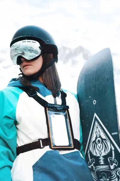 Full speed ahead: Whether on an SUP, skis or rollerskates! – the chest bag follows every track. Thanks to the high-tech material, the smartphone remains touch-enabled: a short tap on the display and the wild ride is immediately recorded.