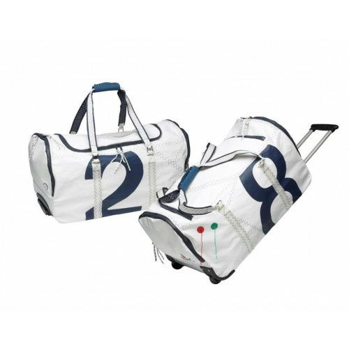 The Trend Marine Sea Boy Sail Cloth Weekend Bag on Wheels is the height of maritime sophistication for your holiday excursions. This large weekend bag, authentically fashioned from Dacron canvas and embellished with eye-catching sail numbers, combines durability with nautical flare.