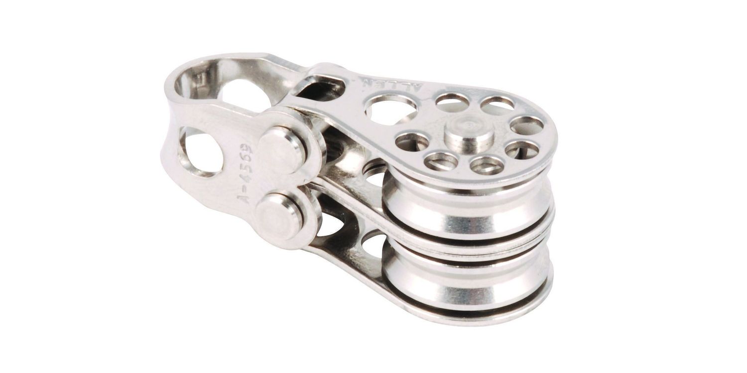This double 16mm Micro Block from Allen can be used where wire, dyneema and spectra lines have been loaded under high tension.