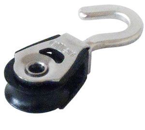 Featuring a single swivel hook, this 20mm Dynamic boat block from Allen has a variety of design and manufacturing features that allow it to handle maximum loads. These include line friendly soft contours and articulation, stainless cheeks and an inner bearing system.