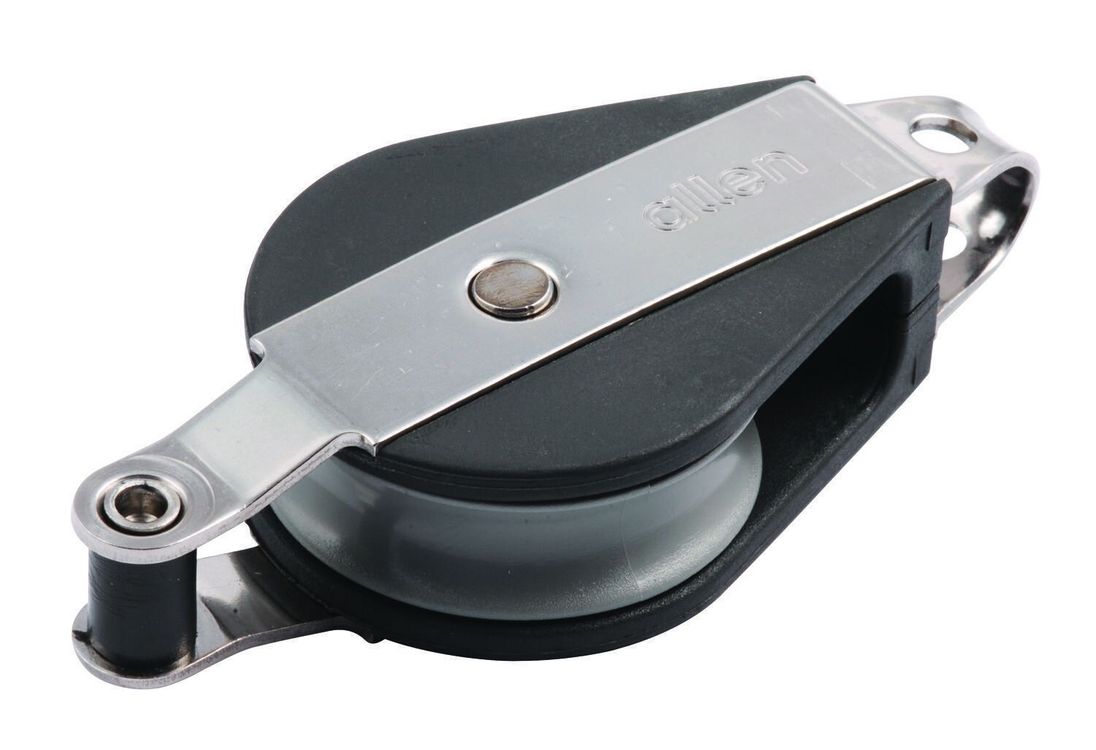 This variant of Allen’s single fixed 38mm Sheet boat block features its own becket, and is ideally designed for a wide variety of on-deck applications. It has been adopted by the Laser class as the prime item of deckgear for use on the Laser mainsheet system.