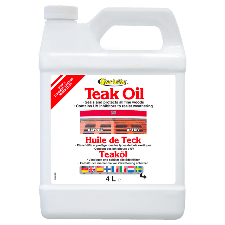 Starbrite Teak Oil is a premium-grade oil specially formulated to protect and enhance the natural beauty of fine teak and other exotic hardwoods. Designed for marine and outdoor use, it penetrates deep into the wood to replace lost natural oils and seal out moisture, preventing drying, cracking, and fading caused by exposure to sun, salt, and weathering.