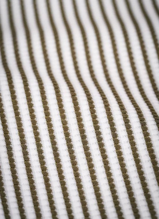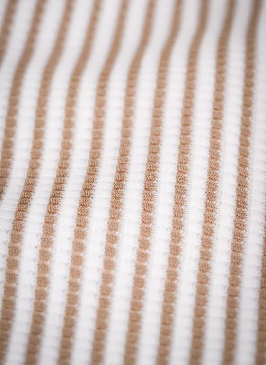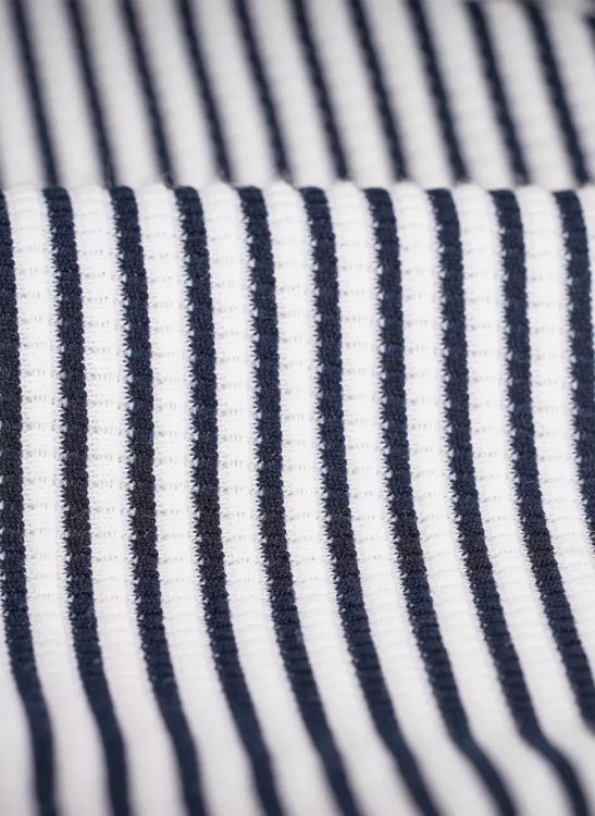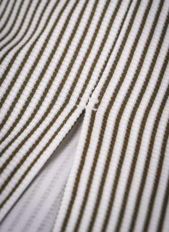 Delicate horizontal stripes and a side slit on the left seam infuse a personal touch into your everyday wardrobe. A chic choice for after-beach or after-sail occasions.