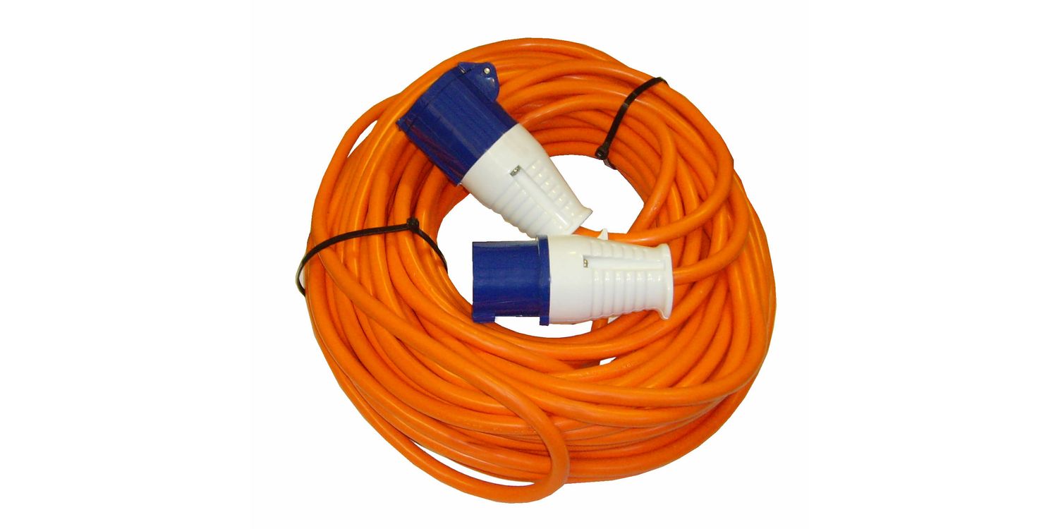 25m 16A orange mains hook up lead, with 2.5mm conductor cable outer.