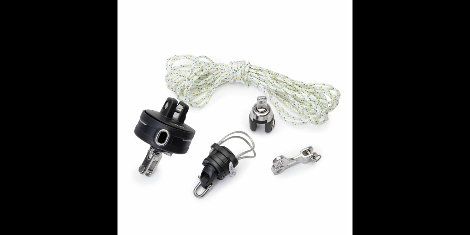 The kit includes top swivel, halyard swivel, drum, tack fitting and furling line.