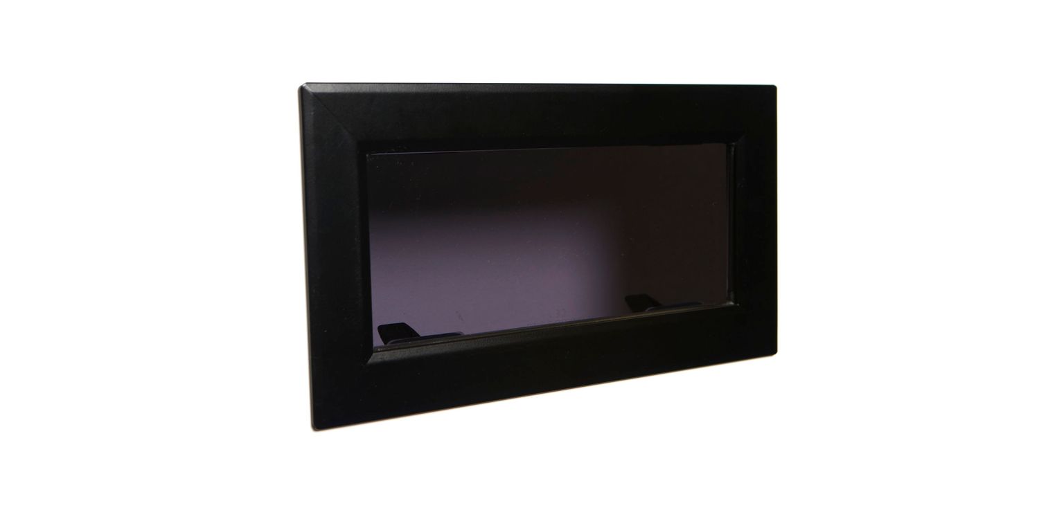The outer frame is powder coat black in colour to camouflage to the acrylic lens; this is more costly than the anodising that is normally used.