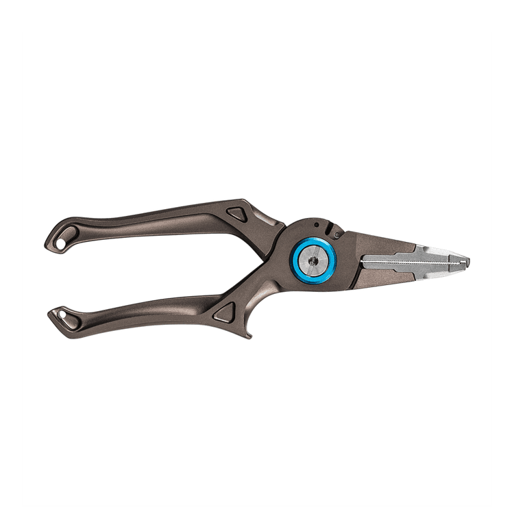Its unique angled shape enhances visibility and control, making tasks like removing hooks, crimping, and handling split rings faster and more efficient. The tool also includes a built - in carbide cutter that slices through fishing lines, including braided lines, with ease.