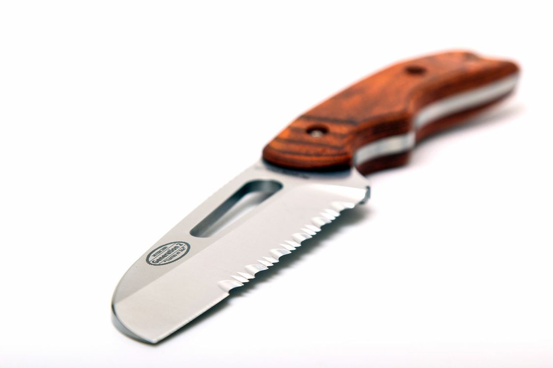The G2 W100P Offshore System Pro, with serrated blade, rigging knife features handles made from carefully chosen slabs of sustainable marine tested hardwood. This beautifully natural material has excellent properties for use at sea.