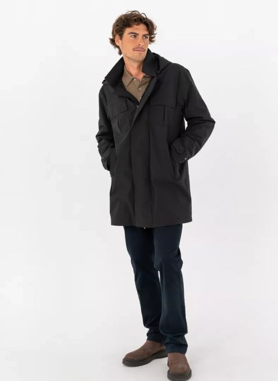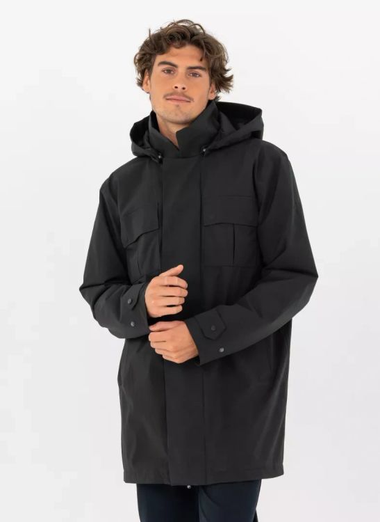 The coat features a detachable hood that can be adjusted, bonded placket and pocket flaps with magnetic buttons, padded collar, an open yoke with a bridle at the back, and adjustable cuffs. Reassuringly the DWR treatment is PFC-free.