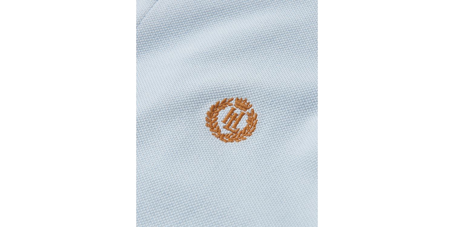 100% Organic Cotton with button closure on the centre front and Laurel and crown embroidery at left chest.