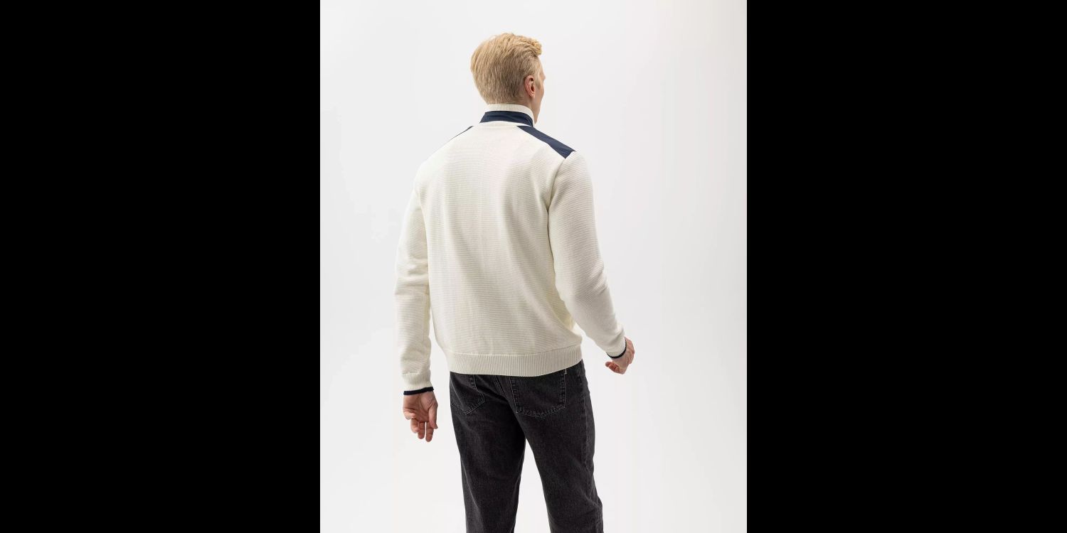 This is a unique wind-lined knitted sweater, made with 100% organic cotton from Swedish brand Holebrook. This flexible, tightly-woven fabric shields you from chilly gusts without compromising breathability, making it ideal for coastal walks, countryside hikes, or crisp days in town.