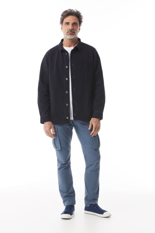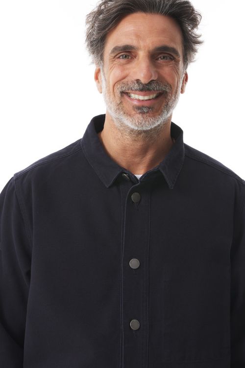 Men's cotton 380g piece-dyed canvas overshirt jacket.