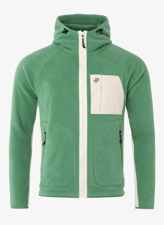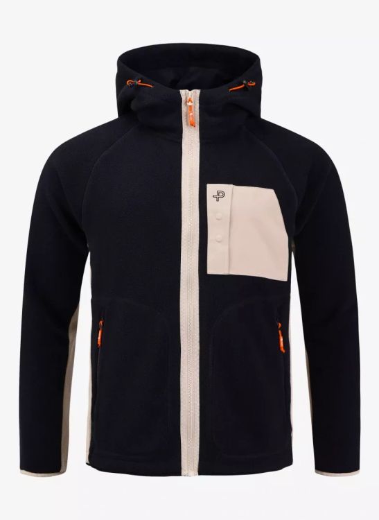In crafting this garment, we've put significant emphasis on sustainable design, using 100% recycled polyester. Naturally, it also comes with practical features like two zippered side pockets to warm your hands, an outer chest pocket in twill for storing small personal items, and elastic cuffs, hem, and hood for flexibility.