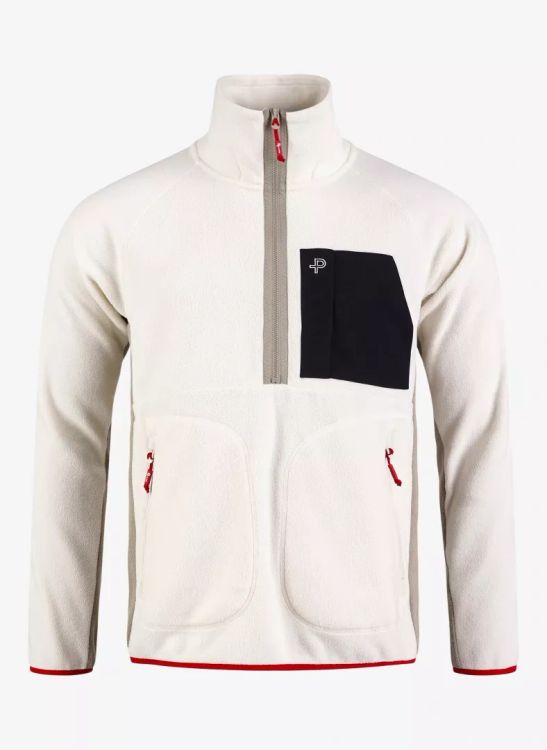 This garment is thoughtfully designed, putting strong emphasis on sustainability, using 100% recycled polyester. Naturally, it also comes with practical features such as two zippered side pockets to keep your hands warm, an outer chest pocket in twill for storing small personal items, and a half-zip for ventilation.