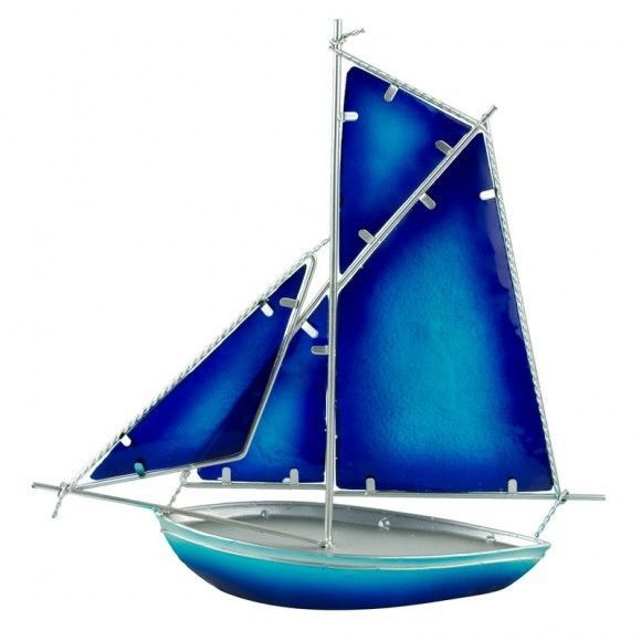A beautifully carved stained glass boat - the sails of this yacht will perfect your display - whether it be in front of a window or a lamp where the light will make the yacht shimmer and glow as the light changes.