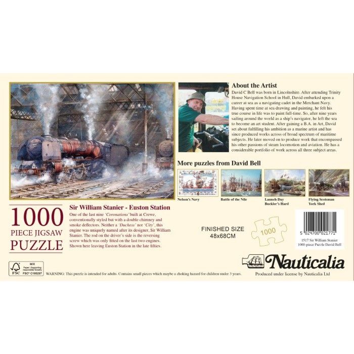 Immerse yourself in the charm of vintage railways with the Sir William Stanier by David Bell 1,000 Piece Puzzle, featuring stunning artwork by renowned artist David Bell. Watercolour artist David Bell is renowned for his historic marine, aviation, and steam locomotive paintings. He combines great technical skill with imagination and vision to create evocative and atmospheric works with incredible attention to detail.