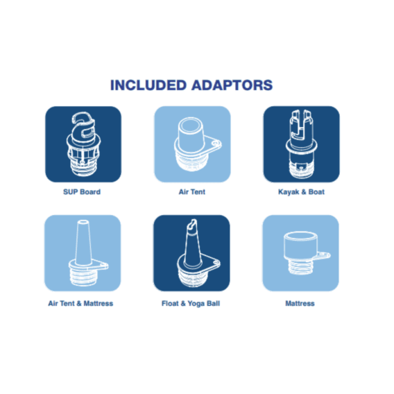Featuring six connectors, it provides quick and easy inflation and deflation, making it ideal for home, travel, or outdoor use. This pump features a rechargeable battery, allowing for cordless operation and the ability to use it anywhere, providing efficient results.