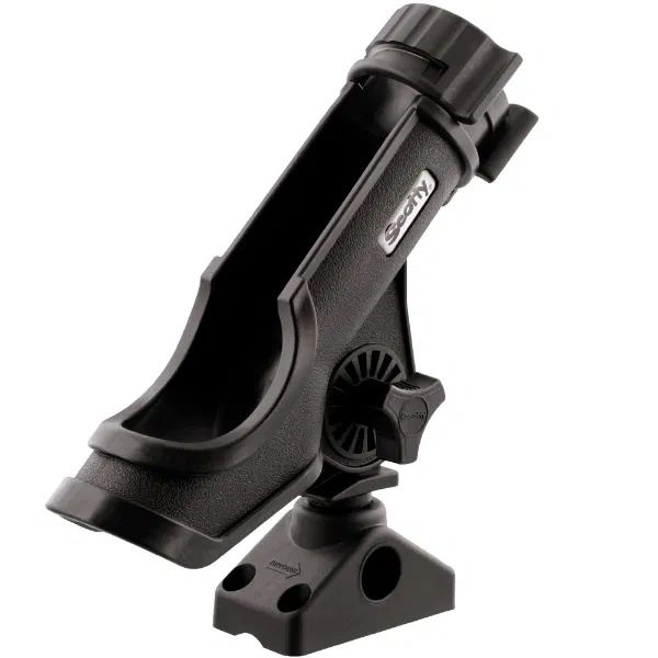 Scotty Powerlock Rod Holder, Black & Side/Deck Mount 241, is Scotty’s most popular, value priced, positive locking, open style rod holder. Its universal cradle fits most rod types, and the front locking ring ensures your rod stays in place, even in rough conditions.