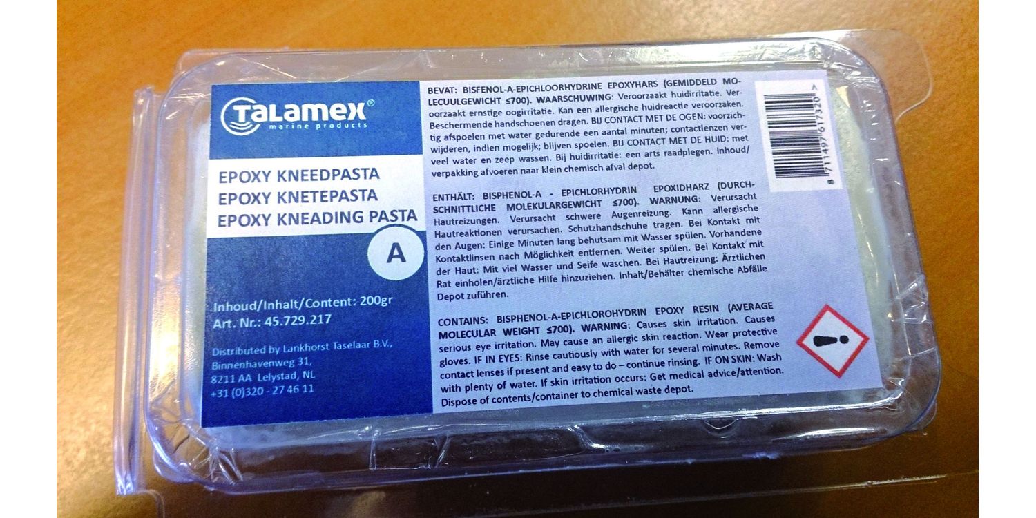 Two components knead pasta for making "steel strong" repairs. Ideal for (emergency) repairs both above and below the waterline by the fast curing and the excellent adhesion on almost all surfaces.