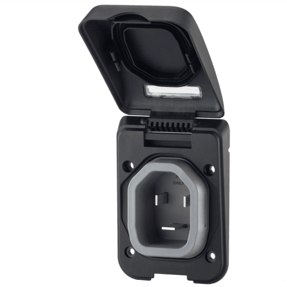 Enhance your power connection with the Smartplug 16 Amp - Non-Metallic Inlet with Black Cover Assembly, designed for superior safety, durability, and ease of use. It can be easily retro-fitted to replace the twist-type inlet products in minutes.