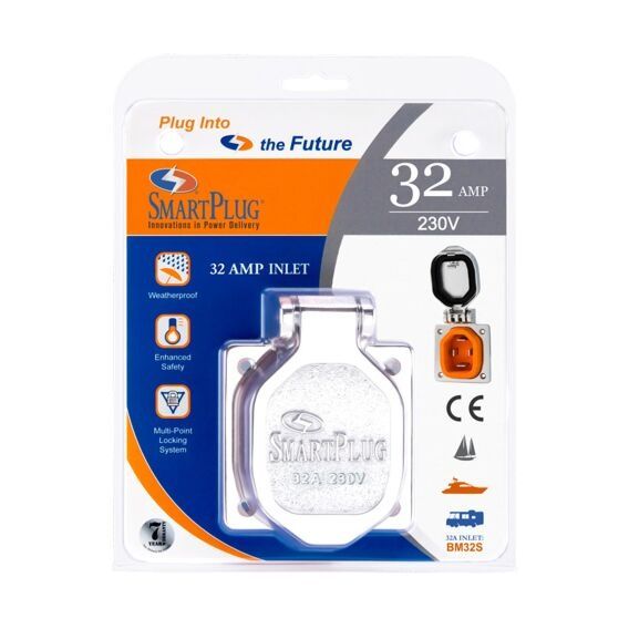 This premium Smartplug 32 Amp Inlet features a robust stainless steel construction for both inlet and cover assembly, ensuring exceptional durability and corrosion resistance in harsh environments. The 32A 230V inlet has been designed to offer unmatched performance and ease of use. It provides superior performance, with a secure, weatherproof connection for high - power applications.