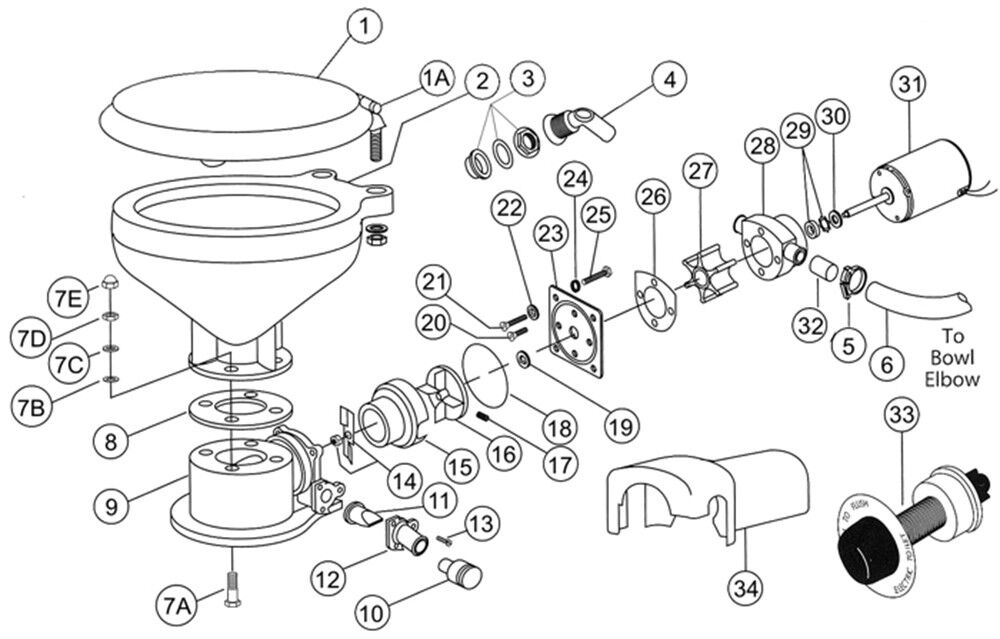 Perfect for marine use, this is a household size bowl with 24V electric toilet spares. The spares can be purchased individually dependent on your needs, or if you're looking for a completely new toilet, simply purchase all the spares below. A high quality and durable toilet.