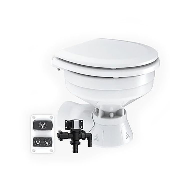The 24V electric system offers reliable performance and is ideal for smaller spaces, due to its compact design. It features a powerful flush system that effectively clears waste, while conserving water, making it a practical choice for boats.