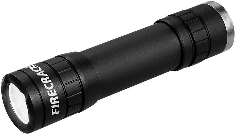 Firecracker™ L.E.D. Flashlight - Black Body Gerber® The Firecracker is a sturdy, rugged flashlight with an anodized aluminum body and a standard five hours of run time powered by a single AA battery. Boasts a longer distance beam and increased spot brightness than other lights in its class.