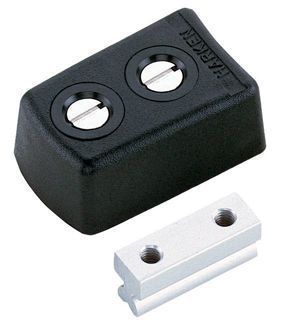 The 22mm Track Endstop Kit from Harken is designed for round mast grooves, and can absort shock loads to prevent damage to the car.