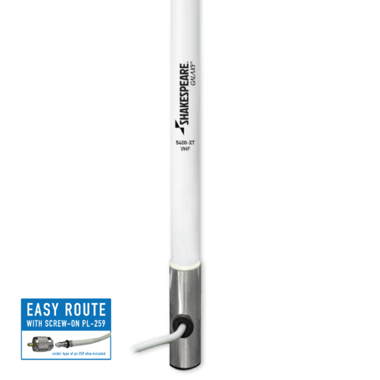 The Shakespeare Galaxy® 5400-XT 4’ 3dB VHF Antenna delivers exceptional performance and durability for serious boaters who demand clear, reliable communication offshore or on inland waters. Designed with Shakespeare’s renowned craftsmanship, this premium marine antenna combines sleek aesthetics with rugged construction to withstand the harsh marine environment.