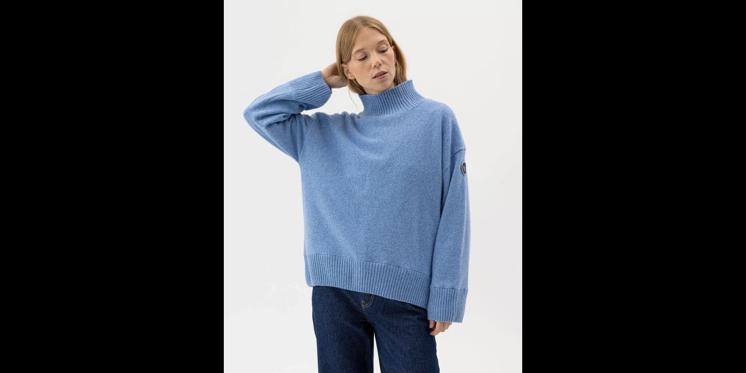 Relaxed fit with turtle neck and rib knit endings.