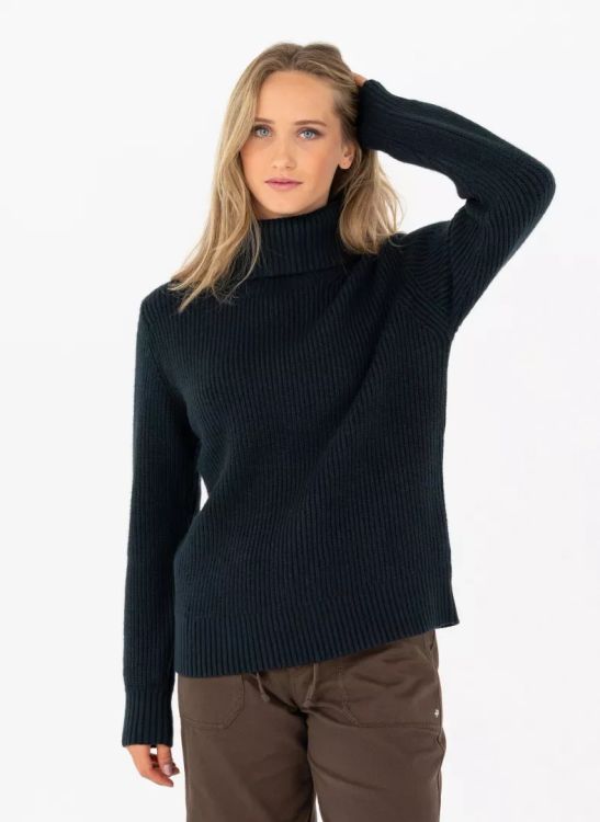 Soft, warm, and easy to layer, it works just as well for coastal walks and travel days as it does for relaxed everyday wear. Classic, stylish and comfy, this rib Essen knit sweater has a flattering folded turtle neck and a metal Pelle P badge on the left sleeve.