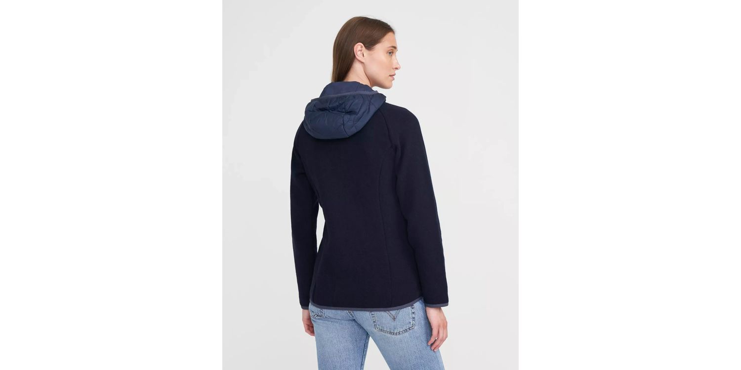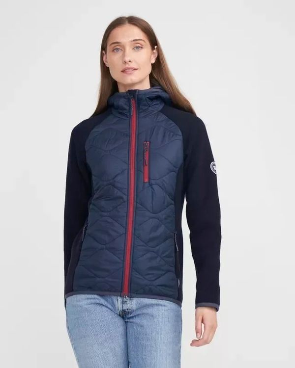 Holebrook Sweden Bodil Hood Windproof Jacket combines fashion and utility. With a smooth wool blend and elastic bordered edges, this knitted jacket delivers great warmth for active lifestyles. It mixes functionality and style with a YKK reverse zipper, two-way functionality, and hidden side pockets. The quilted Piumi fabric, combined with LavaLan wool padding, provides excellent insulation.