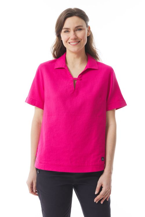 Plain tunic with short sleeves and buttoned sailor collar.