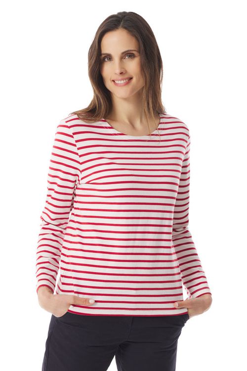 Women's long-sleeved striped T-shirt in 100% organic cotton. This fabric is made from a natural, organic fibre. It's your ally against the heat, thanks to its breathability, optimal comfort, and softness. This lightweight cotton jersey is ideal for summer.
