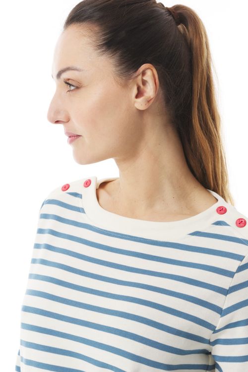Lightweight long-sleeved sweatshirt in 100% 285g cotton with a flattering boat neck.