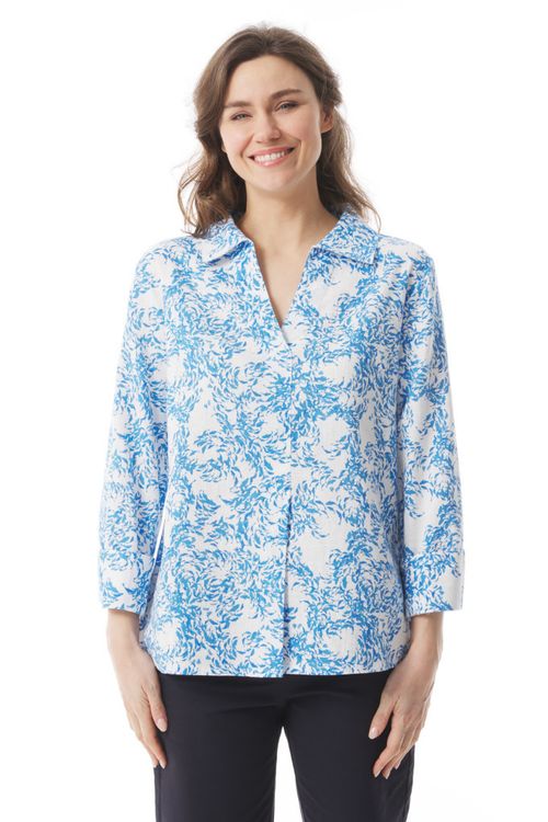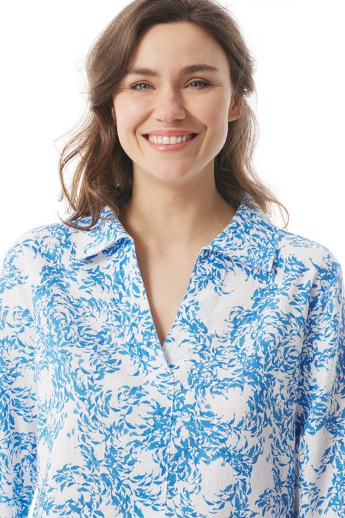 A unique, delightfully patterned V-neck blouse from Mousqueton.